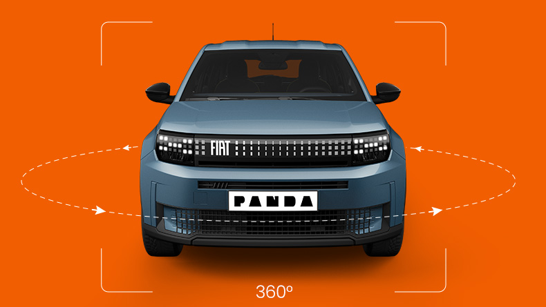 Utforska varje vinkel av din Grande Panda med 360°-vy. Snurra runt och ta in alla detaljer, både inuti och utanpå!